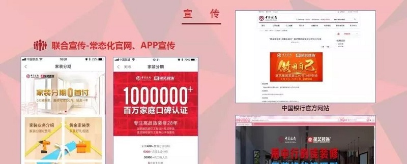 為全面落實和加深中國銀行與星藝裝飾集團在家裝家居金融方面合作,實現(xiàn)互利共贏,中國銀行聯(lián)合星藝裝飾針對具有家裝、家居需求的優(yōu)質客戶推出家裝分期業(yè)務合作。為此,中國銀行為星藝裝飾推出客戶私屬定制家裝分期業(yè)務,以便于星藝客戶用于支付家庭裝修及家具、家電等相關衍生消費需求,并在約定的時間內(nèi)采取分期償還方式按期償還裝修貸款。