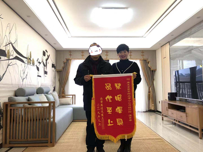 2019年元旦,星藝裝飾設(shè)計(jì)師溫寶華在萬達(dá)茂業(yè)主賀先生家中接受表彰錦旗,公司已有多個(gè)設(shè)計(jì)師受到業(yè)主的肯定和褒獎(jiǎng)。錦旗內(nèi)容:品味至上 慧眼獨(dú)具,這不是星藝裝飾的第一面錦旗,但也肯定不是最后一面的錦旗,紅艷艷的錦旗是星藝裝飾始終堅(jiān)持顧客至上的服務(wù)理念的最好的回報(bào),也是公司不斷發(fā)展、不斷裝的強(qiáng)勁動(dòng)力,我們將繼續(xù)堅(jiān)持“把裝修交給我們,您放心上班去”的宗旨,全新全新為每一位客戶服務(wù),打造出更多的“放心工程”、“品質(zhì)工程”,來回報(bào)我們的客戶。