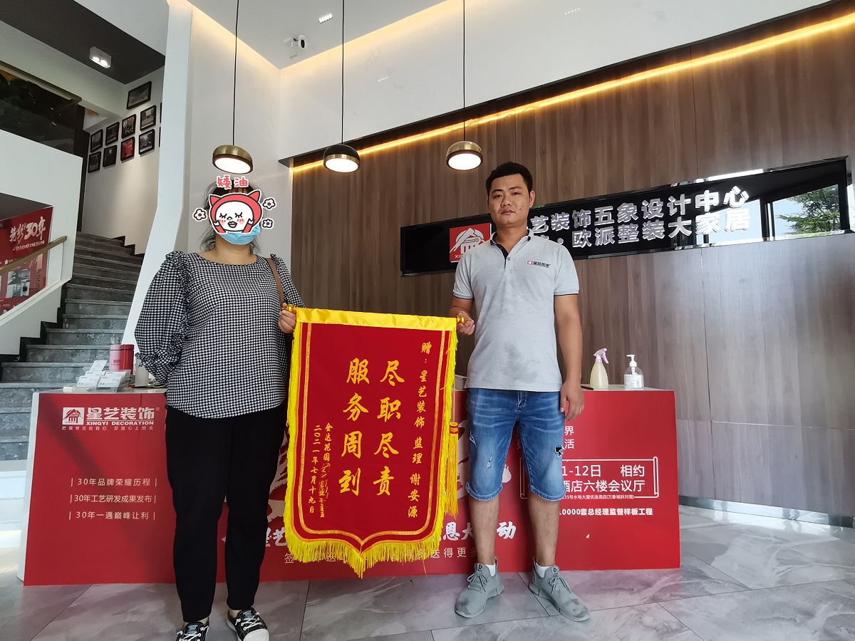業(yè)主將大紅錦旗送到星藝裝飾五象設計中心,以感謝星藝裝飾工程監(jiān)理謝安源盡職盡責,服務周到 ,這是對我們工作的極大認可和肯定。在今后的工作中,我們將再接再厲,堅持做客戶口碑,打造出更多的“精品工程”、“放心工程”,來回報我們的客戶。