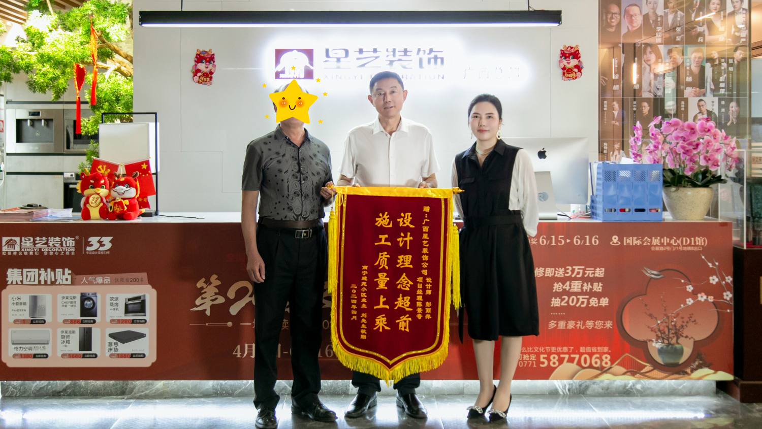 星藝公司喜獲榮譽,誠摯感謝南寧建苑小區(qū)業(yè)主劉先生的認可與厚贈。這份“設(shè)計理念超前 施工質(zhì)量上乘”的錦旗,不僅是對我們施工質(zhì)量上乘的肯定,更是對我們設(shè)計理念超前的贊譽。我們深知,每一個工程的成功都離不開客戶的信任與支持。星藝公司將繼續(xù)秉承專業(yè)精神,為客戶提供更優(yōu)質(zhì)的服務(wù),打造更多精品工程。在此,我們衷心祝愿劉先生及所有業(yè)主們生活美滿,事業(yè)興旺。我們用匠心雕琢每一處細節(jié),用創(chuàng)意點亮每一個空間,只為打造出讓客戶滿意的夢想之家