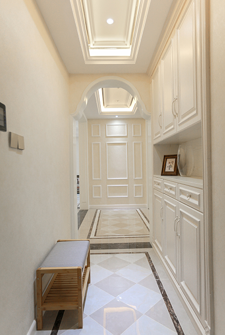 玄關(guān)是室內(nèi)與室外的連接橋梁,是過(guò)渡空間。無(wú)論是客人還是主人,進(jìn)門基本都會(huì)先經(jīng)過(guò)玄關(guān)處。玄關(guān)作為進(jìn)入室內(nèi)換鞋、更衣或從室內(nèi)去室外的緩沖空間,雖然面積不大,但使用頻率較高,是進(jìn)出家門的必經(jīng)之處,因此玄關(guān)的裝飾顯得格外重要。
