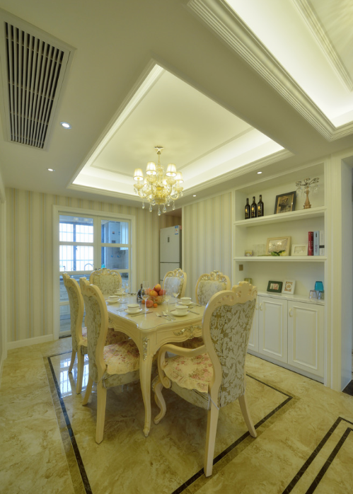 獨(dú)立式餐廳要保證快捷衛(wèi)生、安靜舒適。照明要集中在餐桌上面,光線柔和,色彩素雅。餐廳位置應(yīng)靠近廚房,墻面上可適當(dāng)掛些裝飾畫。餐桌、椅、柜的擺放與布置不僅要與餐廳的整個(gè)風(fēng)格相統(tǒng)一,還要為家庭成員的活動(dòng)留出合理的空間。如方形和圓形餐廳,可選用圓形或方形餐桌,居中放置;狹長(zhǎng)的餐廳可在靠墻或窗一邊放一長(zhǎng)餐桌,桌子另一側(cè)擺上椅子,這樣空間會(huì)顯得大一些。