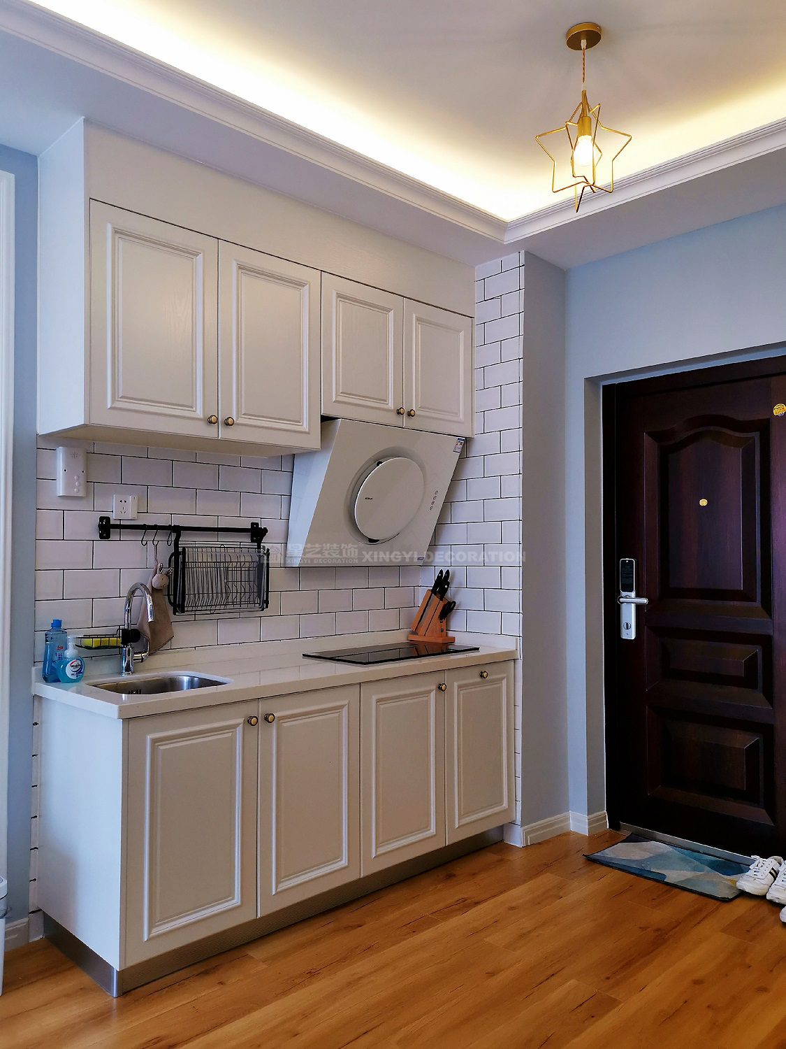 廚房的位置沒有改變,通過變裝,廚房的顏值倒是增加不少,一股網(wǎng)紅范兒,小是小了點(diǎn),一兩個(gè)人住足夠了。