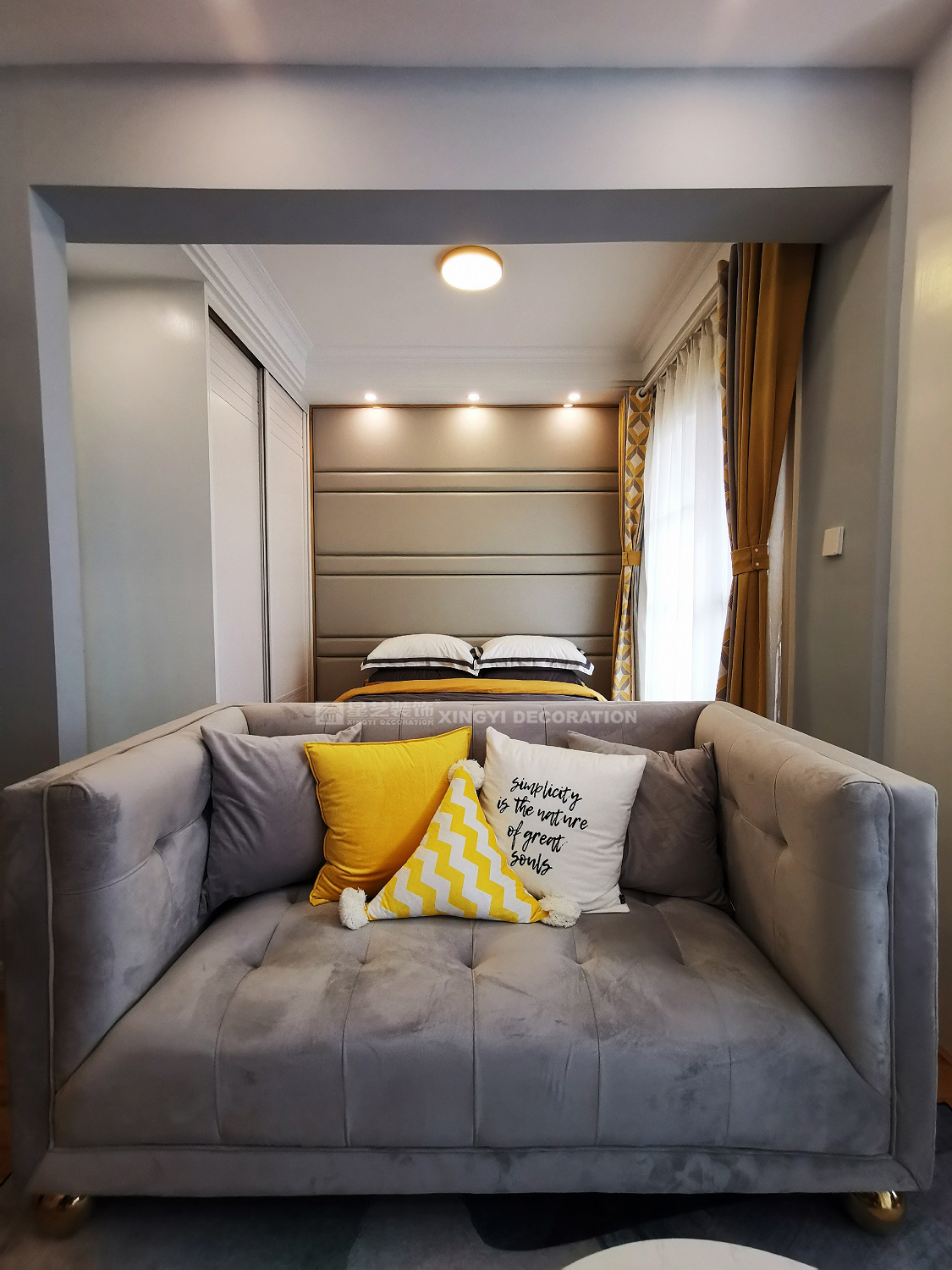 為什么要把這兩個(gè)空間放在一起講呢?因?yàn)樵谶@次改造中,變動(dòng)最大膽的就是這兩個(gè)空間,拆除了臥室與客廳的墻體,讓客廳與臥室空間相通,即滿足了客廳的功能又讓空間得到延伸。
