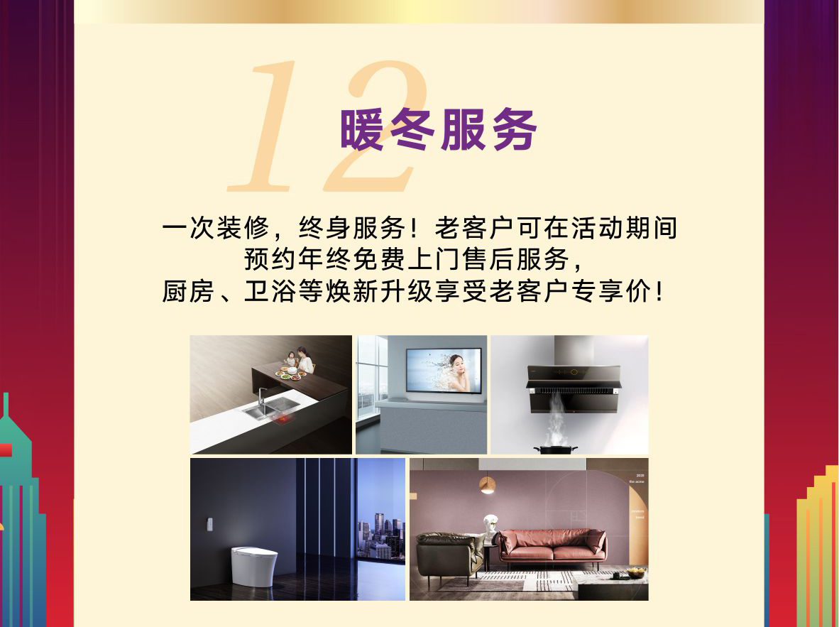 環(huán)保、運(yùn)輸、限電政策嚴(yán)格管控下,材料上漲、人工上漲導(dǎo)致裝修成本越來(lái)越高。為減少業(yè)主裝修煩腦,回饋廣大新老客戶(hù),按集團(tuán)總部統(tǒng)一部署,舉行2021年“歲未感恩.暖冬行動(dòng)”全國(guó)跨年鉅惠大聯(lián)動(dòng)活動(dòng),給八桂裝修業(yè)主帶來(lái)一場(chǎng)保質(zhì)更保價(jià)的高品質(zhì)家裝盛會(huì)。本次活動(dòng)星藝特別承諾:活動(dòng)期間下定,2022年裝修享2021年單價(jià)等以下多重好禮鉅惠,具體優(yōu)惠細(xì)則如下:
