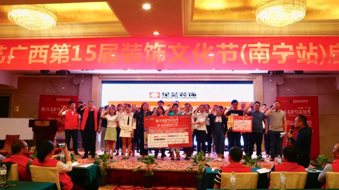2019年4月7日,中國 ? 星藝廣西第十五屆裝飾文化節(jié)(南寧站)啟動(dòng)誓師大會(huì)在南寧金旺角大酒店隆重舉行。星藝裝飾集團(tuán)決策委成員、廣西區(qū)域總監(jiān)徐橘、南寧區(qū)域總經(jīng)理周平生、南寧區(qū)域設(shè)計(jì)總監(jiān)李明、參展聯(lián)盟品牌及南寧區(qū)域全體員工約五百余人歡聚一堂,共襄盛舉,為星藝裝飾連續(xù)舉辦15年的裝飾文化節(jié)活動(dòng)學(xué)習(xí)攢力,簽署“軍令狀”,定目標(biāo)。本次啟動(dòng)大會(huì)取得圓滿成功,也預(yù)示著15屆裝飾文化節(jié)(南寧站)定將再創(chuàng)輝煌。