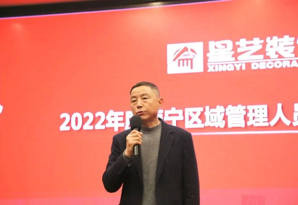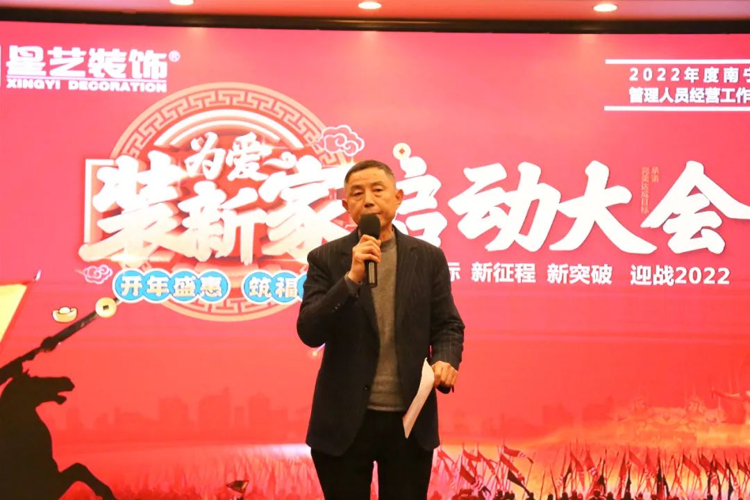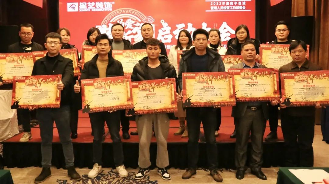在啟動前,由星藝裝飾南寧區(qū)域設計總監(jiān)李明上臺回顧分析2021年星藝南寧所取得的成績,在同比前年數(shù)據(jù)、上游市場的變化,李工表示“星藝南寧業(yè)績能保持穩(wěn)定增長的局面實屬不易”,并強調(diào)“不止團隊管理者要創(chuàng)新,部門也必須創(chuàng)新”,隨后與各個部門負責人簽訂年度目標責任書、開年活動任務軍令狀。