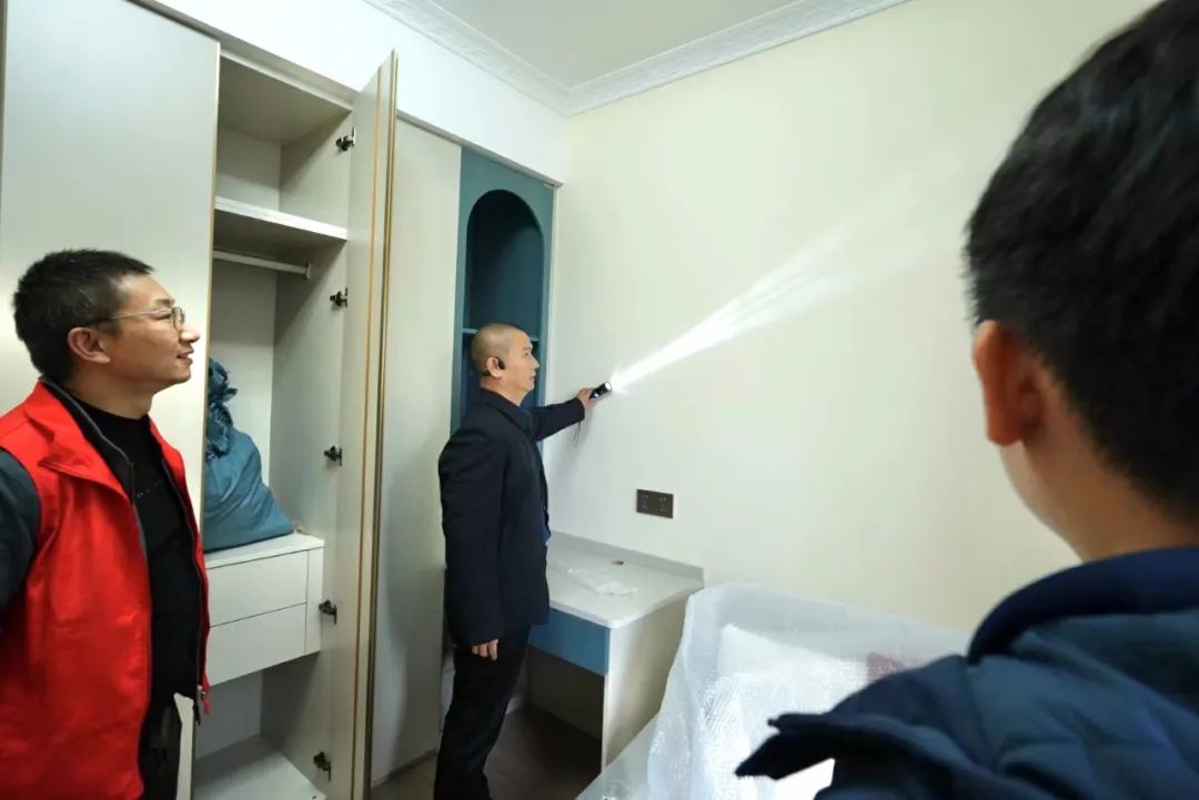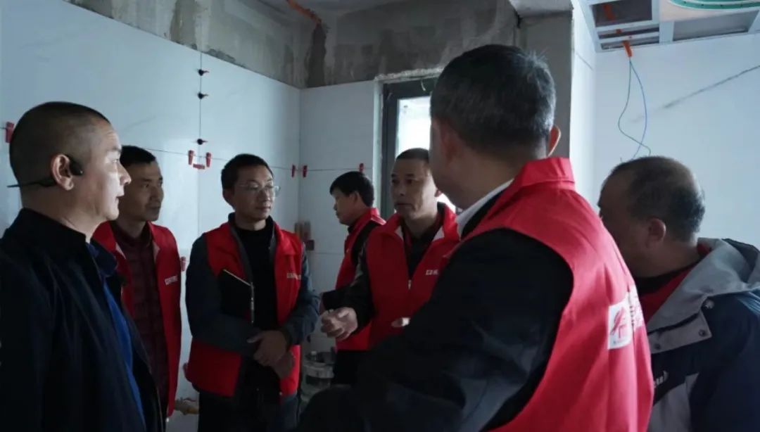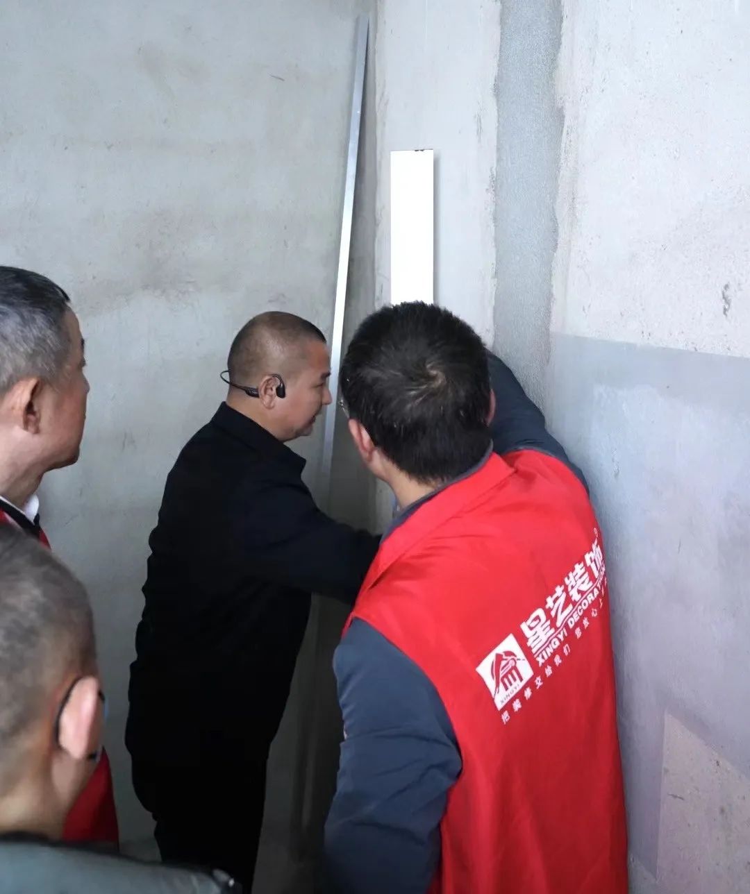 品質(zhì)大宅不僅需要精心設(shè)計(jì)、合理規(guī)劃空間布局,更需要高品質(zhì)的施工,在現(xiàn)場,工藝標(biāo)準(zhǔn)經(jīng)驗(yàn)豐富的張總與現(xiàn)場監(jiān)理、質(zhì)檢以及施工師傅搭手實(shí)操交流,墻面找平膩?zhàn)蛹记?、門口的收邊工藝、輕鋼骨工藝驗(yàn)收、水電鋪設(shè)、板材進(jìn)場、衛(wèi)生間廚房貼磚……事無巨細(xì),對每道施工工序改進(jìn)、提升都給出了實(shí)用可行的建議。