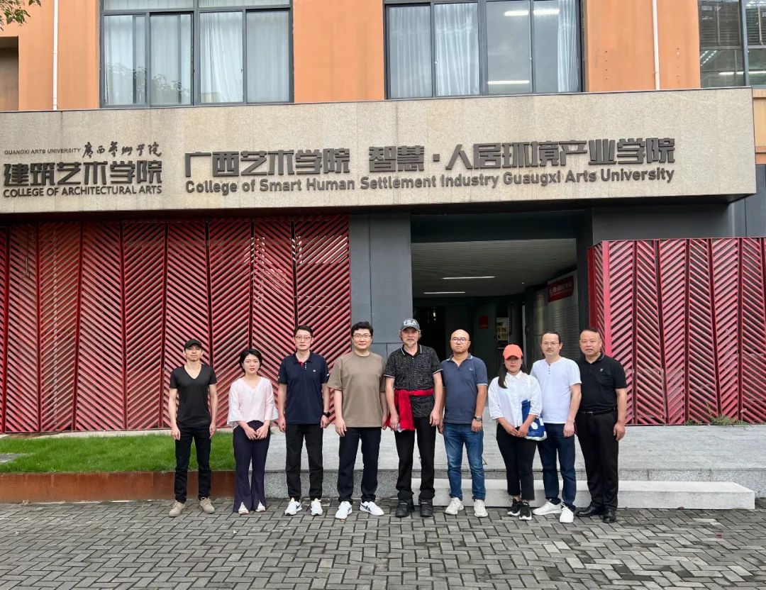 隨著授課結(jié)束,在院環(huán)境設(shè)計系主任邊繼琛教授的帶領(lǐng)下,余工一行人參觀了建筑藝術(shù)學院,不管是其建筑設(shè)計成果展示還是院系內(nèi)的實操基地,都能讓參觀的一行人感受到廣藝建筑藝術(shù)院滿滿的藝術(shù)設(shè)計氛圍。