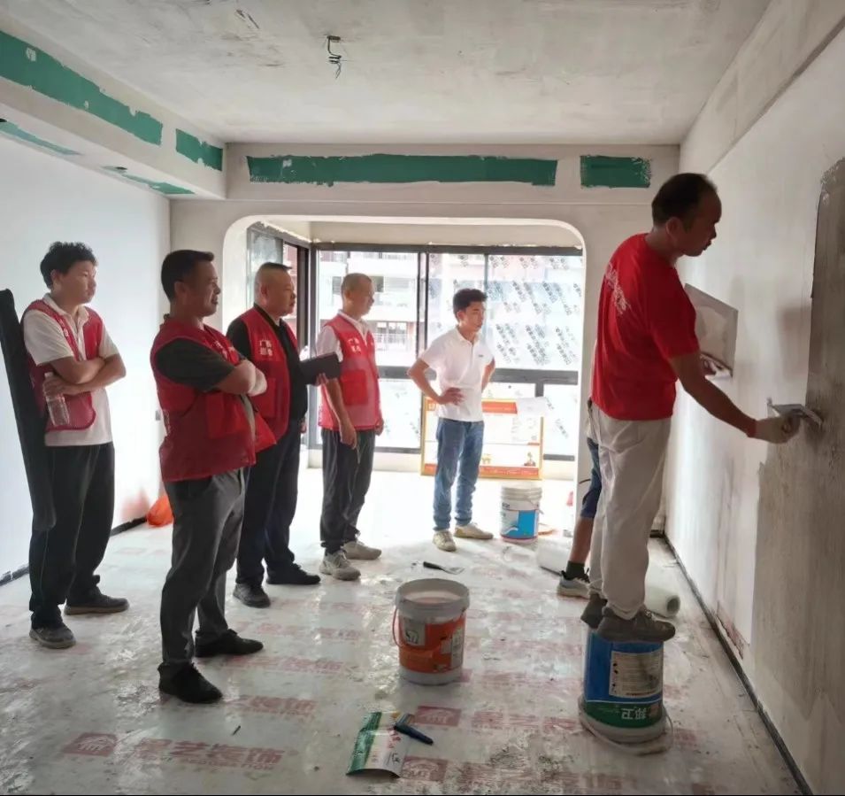 在檢查過程中,經(jīng)驗豐富的余工、吳工以及易經(jīng)理等一行人嚴格按照公司工程規(guī)范管理制度在工地上進行巡查,從墻面的平整度、用材的品質(zhì)到施工的工藝,幾位巡檢員現(xiàn)場溝通交流,上手檢查,連測帶量,精細到每一處細節(jié),力求保質(zhì)保量,為業(yè)主打造一個安全可靠的品質(zhì)新家。