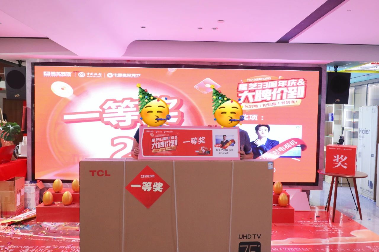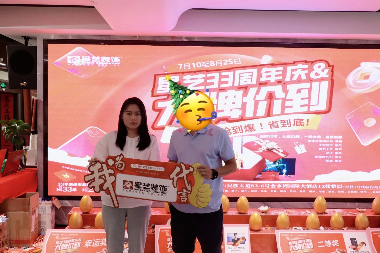 活動中,星藝南寧也100%完美兌現(xiàn)了對客戶的承諾,客戶朋友們在享受專屬于南寧區(qū)域的“集團補貼”和“周年慶多重豪禮”后,終極抽獎環(huán)節(jié)也讓客戶滿載而歸,各種驚喜好禮現(xiàn)場大派送......