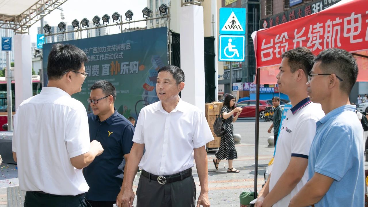 自治區(qū)發(fā)展改革委二級巡視員李新勤、自治區(qū)發(fā)展改革委環(huán)資處處長陳彥武、自治區(qū)商務(wù)廳市場運(yùn)行和消費(fèi)促進(jìn)處副處長顏國彪、自治區(qū)交通運(yùn)輸廳道路運(yùn)輸發(fā)展中心副主任朱華忠、自治區(qū)農(nóng)業(yè)農(nóng)村廳農(nóng)機(jī)中心副處長陳雷明、南寧市發(fā)展改革委副主任賀大州、海爾智家廣西分公司總經(jīng)理張迪、南寧百貨大樓股份有限公司總經(jīng)理覃春明參與活動并且發(fā)布活動致辭。