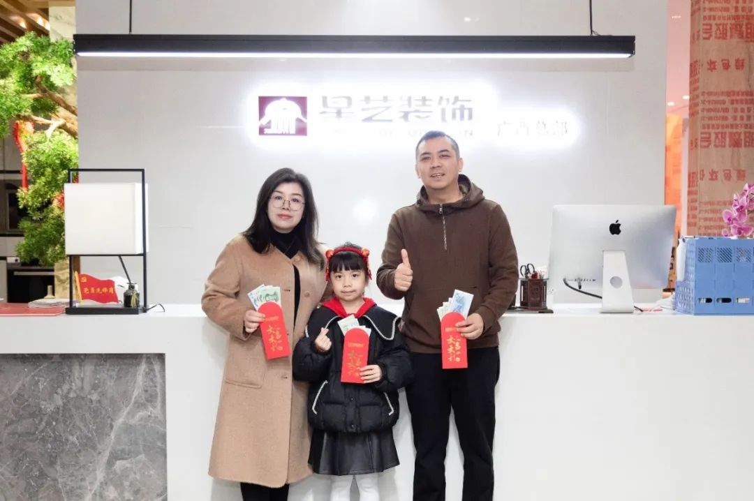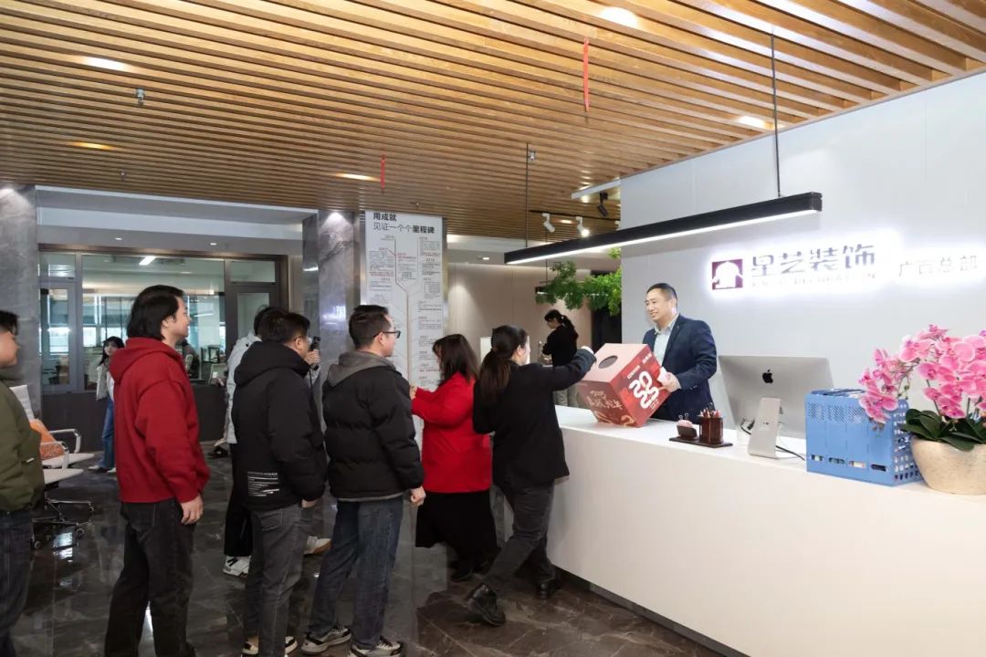 在星藝南寧區(qū)域副總胡四民的帶領(lǐng)下,星藝南寧的家人們有序抽取象征著新年新禧的開工大紅包,一如往年,每份紅包承載著公司對員工新年工作順利的美好祝愿,也是感謝每一位家人在一年又一年的攜手相伴,喜慶開年,共同為2025年新精彩而奮力拼搏!