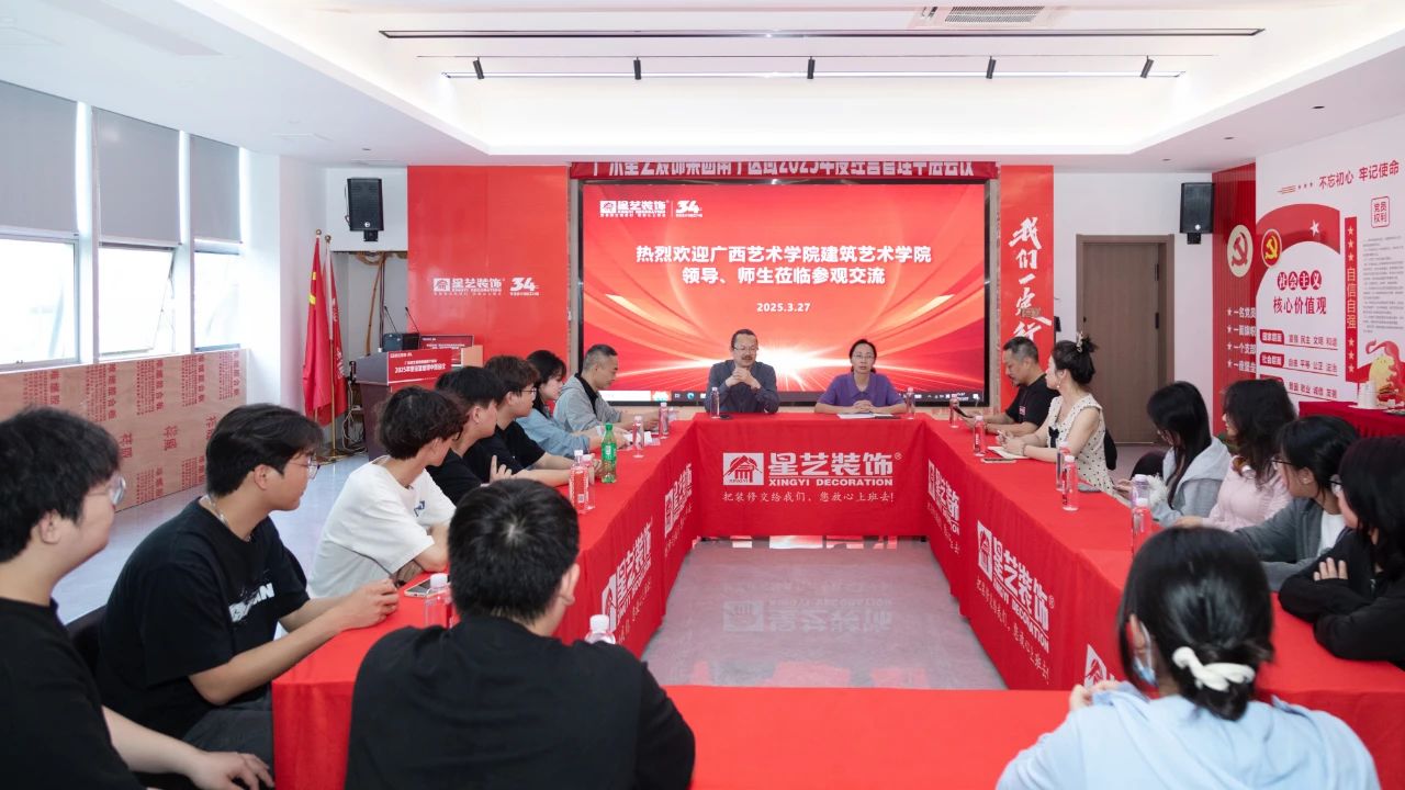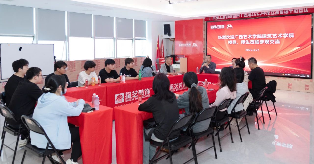 座談會上,李工代表星藝裝飾向?qū)W校師生一行人表示誠摯的歡迎,并與周云云經(jīng)理分別介紹了星藝裝飾創(chuàng)立34年、入邕23年以來的發(fā)展歷程、人才培養(yǎng)方式、校企合作理念以及與廣藝建院的星藝獎學(xué)金、廣藝在企優(yōu)秀學(xué)生代表的故事等;李工表示,星藝南寧在當下新形勢和新模式發(fā)展中需要更多優(yōu)秀學(xué)生持續(xù)加入,并表達了期待能與廣西藝術(shù)學(xué)院建筑藝術(shù)學(xué)院在人才培養(yǎng)、產(chǎn)學(xué)融合等方面的深化交流合作,實現(xiàn)雙向賦能,為建筑裝飾行業(yè)培養(yǎng)更多的專業(yè)人才。