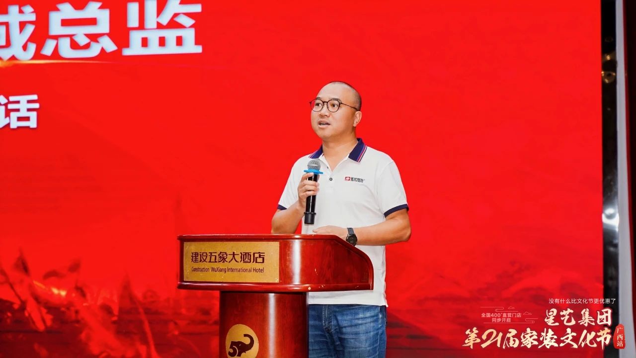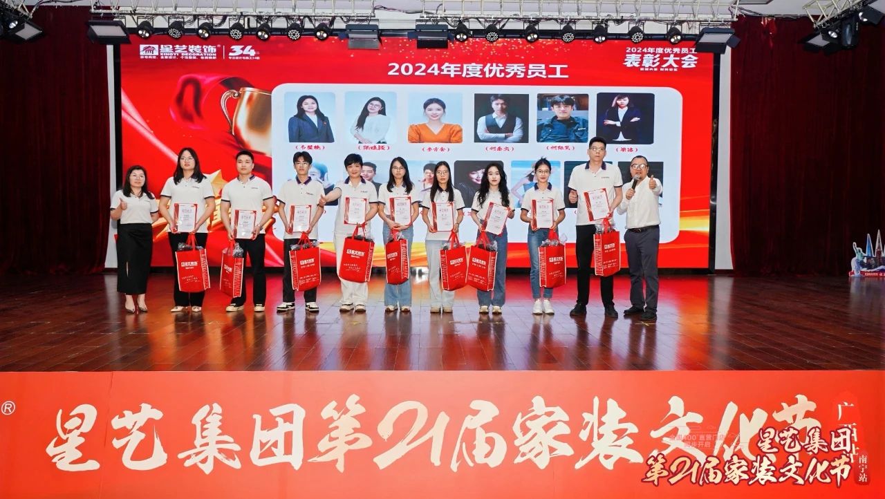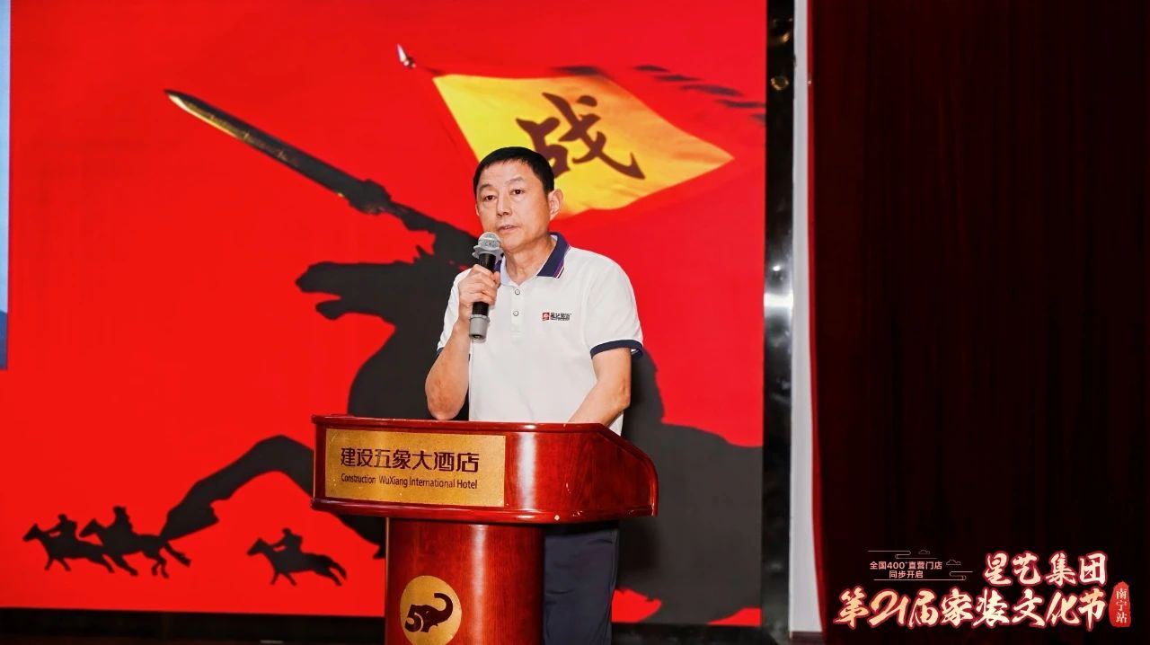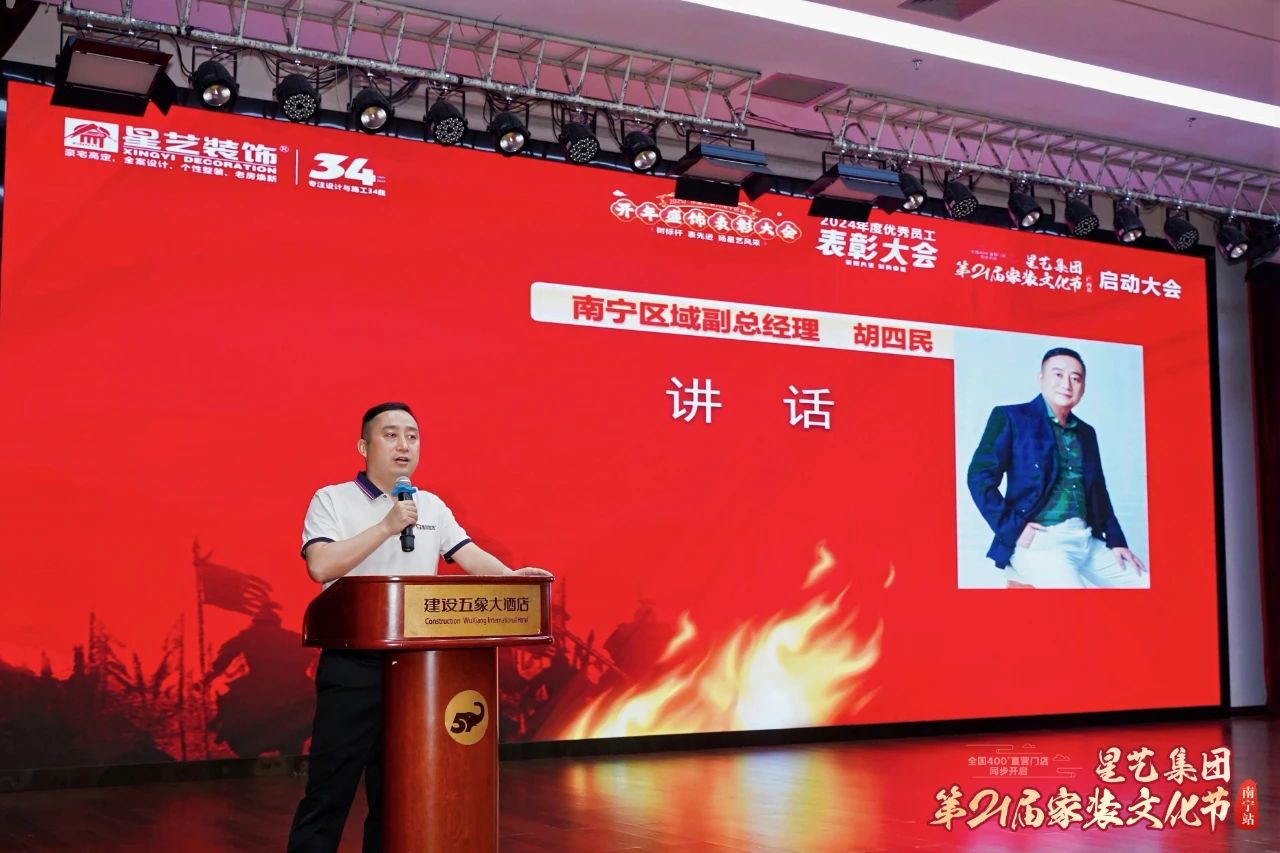 緊接著,會議進入2024年度總結表彰暨2025年度工作部署環(huán)節(jié),星藝南寧總經(jīng)理周平生上臺致辭,周總簡要概述2024年星藝南寧所取得的佳績,肯定了星藝全體家人凝心聚力,保持業(yè)績持續(xù)增長的勢頭;同時期待2025年星藝裝飾再次勇攀高峰,取得佳績。