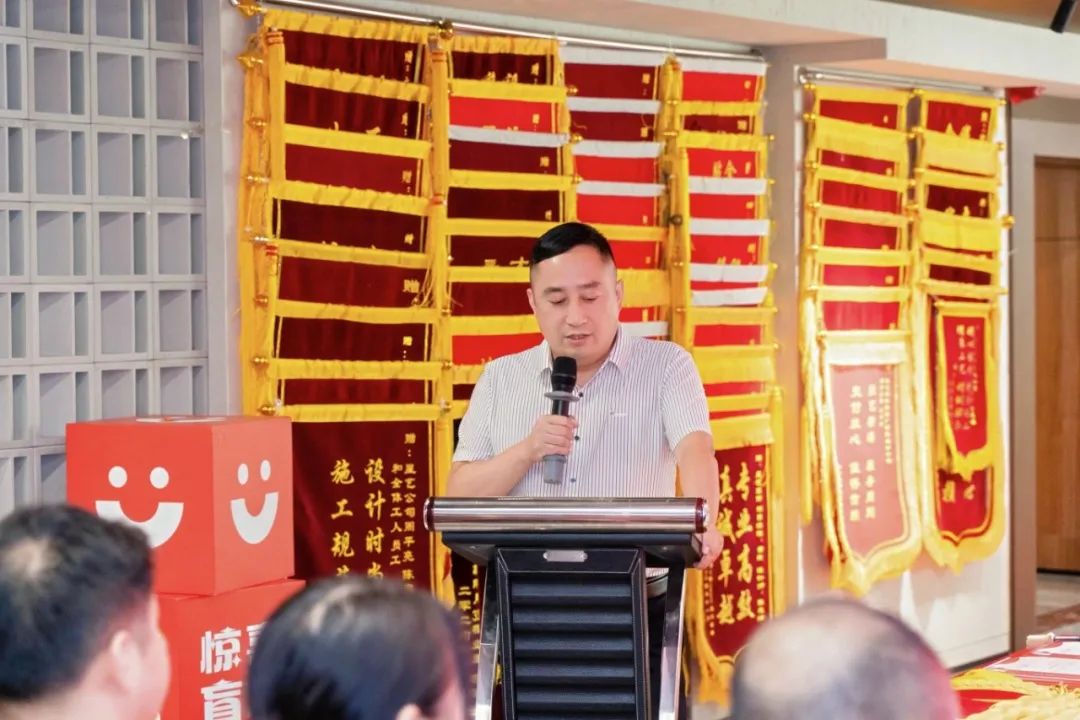 會(huì)議開始,星藝南寧區(qū)域副總經(jīng)理胡四民上臺(tái)致辭,胡總先是感謝在文化節(jié)活動(dòng)期間,一直堅(jiān)持在崗位上奮力拼搏的每位星藝家人,表揚(yáng)了優(yōu)秀團(tuán)隊(duì)及優(yōu)秀員工,同時(shí)點(diǎn)出了此次活動(dòng)的亮點(diǎn),簽單同比20屆增加近10%,回頭客增長(zhǎng)超過10%,再次證明星藝口碑和影響力。不管是設(shè)計(jì)師還是營(yíng)銷人員,新媒體的意識(shí)都在逐漸變強(qiáng),對(duì)每位星藝家人的創(chuàng)新精神,開拓新渠道舉措大加贊賞。