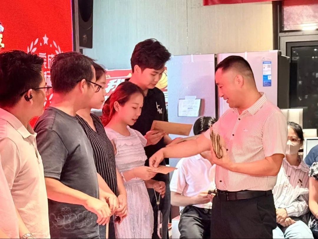 緊接著,會(huì)議進(jìn)入表彰環(huán)節(jié),星藝南寧區(qū)域總經(jīng)理周平生、區(qū)域設(shè)計(jì)總監(jiān)李明以及區(qū)域副總經(jīng)理胡四民分別為在第21屆家裝文化節(jié)(南寧站)活動(dòng)中業(yè)績(jī)突出、表現(xiàn)優(yōu)秀的團(tuán)隊(duì)、個(gè)人頒發(fā)活動(dòng)獎(jiǎng)金及榮譽(yù)證書,鼓勵(lì)現(xiàn)場(chǎng)星藝家人們發(fā)揮敢闖敢拼的精神,向榜樣看齊。