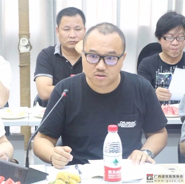 ( 廣西建筑裝飾協(xié)會會長龐耀國主持會議)