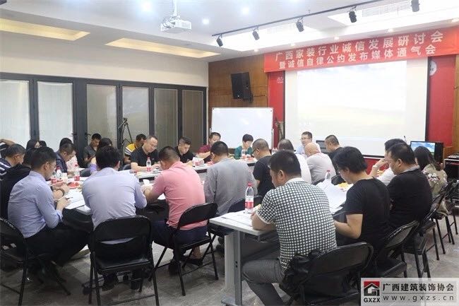 基于此背景下,5月14日下午,由廣西建筑裝飾協(xié)會牽頭,組織會員企業(yè)代表在星藝裝飾南寧分公司會議室召開——廣西家庭居室裝飾裝修行業(yè)誠信發(fā)展研討會暨媒體通氣會。廣西電視臺新聞?lì)l道、南寧電視臺、新聞910廣播電臺、南國早報(bào)、南寧晚報(bào)主流媒體受邀出席會議。
