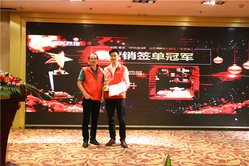 在李工精彩致辭后,會議進(jìn)入表彰優(yōu)秀環(huán)節(jié);在“好飾連城5(南寧站)”活動中,涌現(xiàn)出許多表現(xiàn)突出的優(yōu)秀團隊和員工,他們齊心奮進(jìn),勇創(chuàng)佳績,成功斬獲一單又一單為本次活動所獲得的成績增添許多助力;如同璀璨明珠,引人注目。